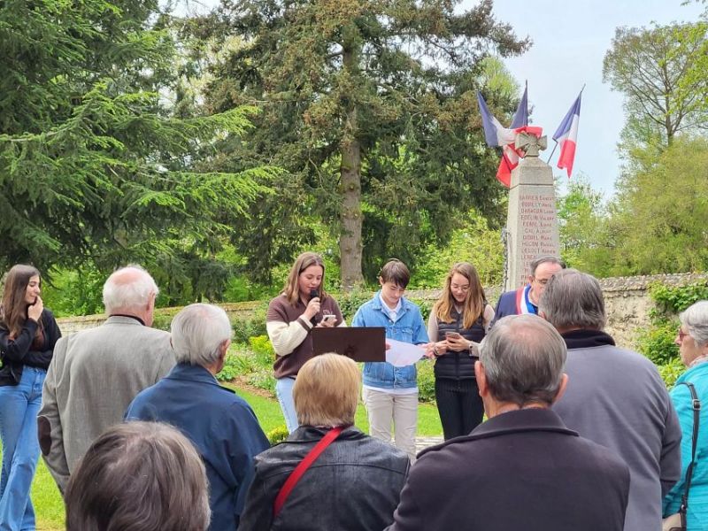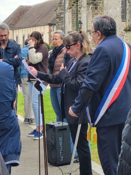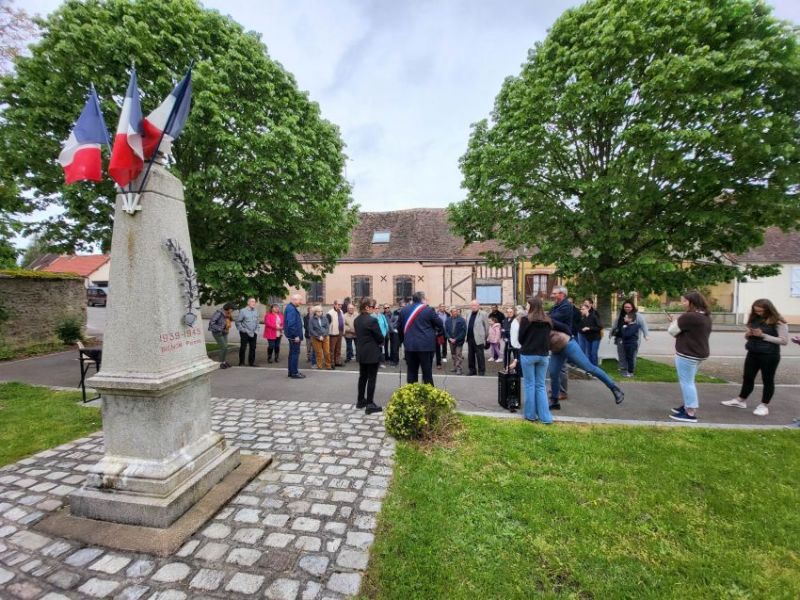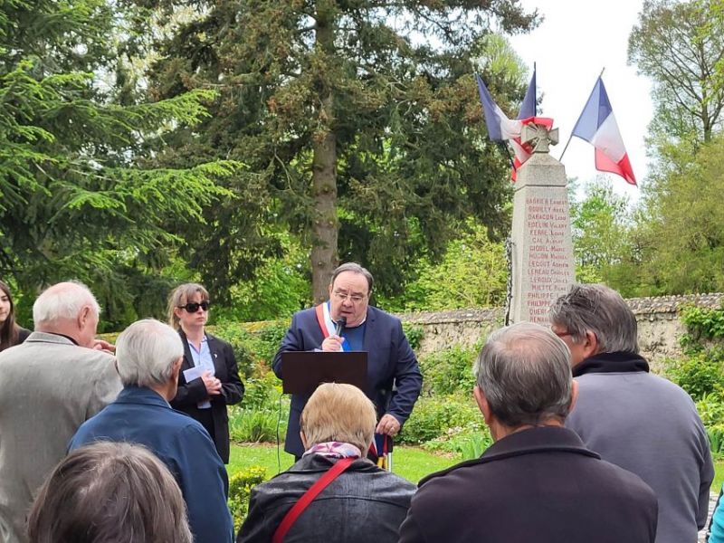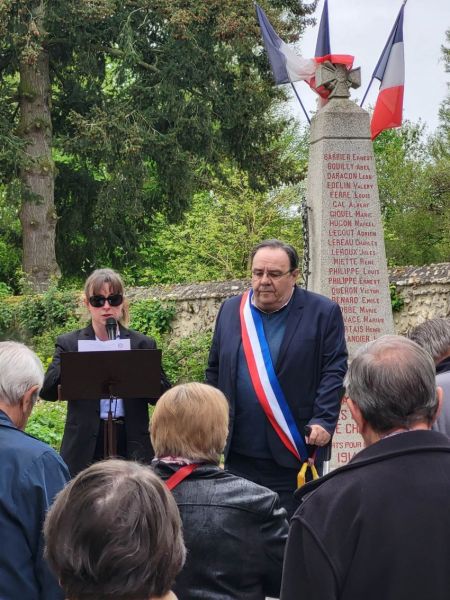 Ce lundi 8 mai 2023 à 11h45, la commune de Chuisnes a commémoré le 78éme aanniversaire de la victoire du 8 mai 1945. La population s'est réunie devant le monument aux morts pour assister à cette cérémonie. Christelle BERTHELOT, Adjointe, et Jacques MAUPU, Maire ont procédé à la lecture du message de l'UFAC et du message de Mr Sébastien LECORNU (Ministre des Armées) et de Mme Patricia MIRALLES (secrétaire d'Etat aux Anciens Combattants et à la Mémoire). Emma, Iris et Justin, jeunes habitants de notre commune avaient également préparé une lecture pour l'occasion. Après avoir déposé une gerbe de fleurs et observé une minute de silence, l'assistance s'est retrouvée sous le préau de l'école maternelle pour le traditionnel vin d'honneur.